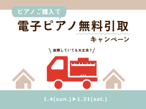 当社でピアノを購入のお客様限定で、電子ピアノ無料引き取りキャンペーンを開催いたします。