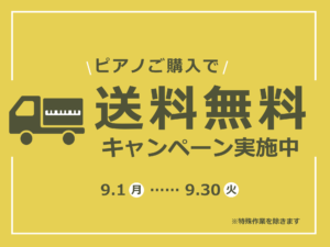 以下の期間中に、配送料無料キャンペーンを開催いたします。ピアノの購入をご検討中のお客様は、この機会にぜひご来店くださいませ。