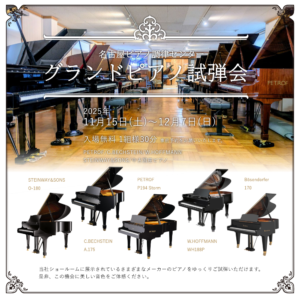 2025年11月15日(土)~12月7日(日)の間、グランドピアノの試弾会を開催いたします。