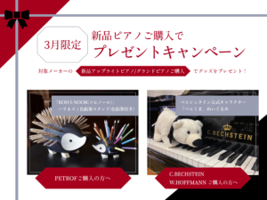 ペトロフピアノ、ベヒシュタインピアノ、ホフマンピアノをご購入のお客様に、期間限定でグッズプレゼントをご用意いたしました。